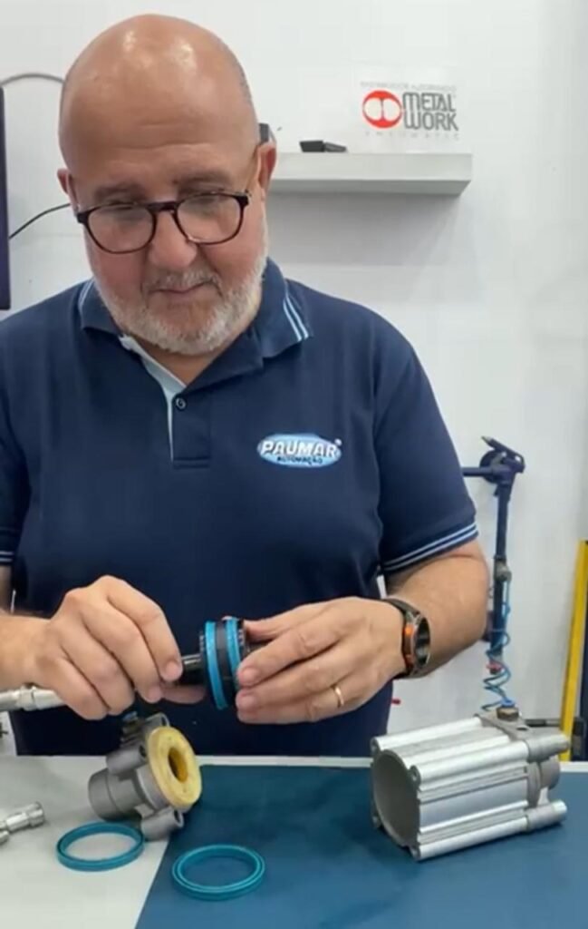 Manutenção em cilindros pneumáticos e hidráulicos, válvulas solenoides, preparação de ar comprimido e componentes de automação.